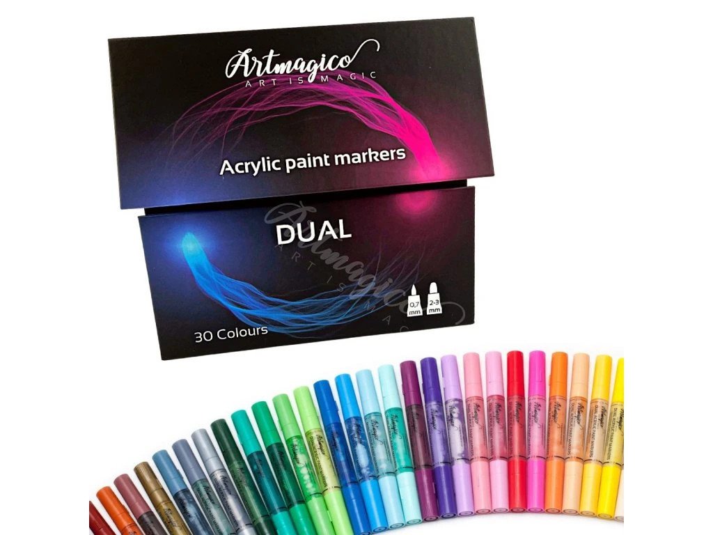 Akrylové fixy DUAL se dvěma hroty 30 barev