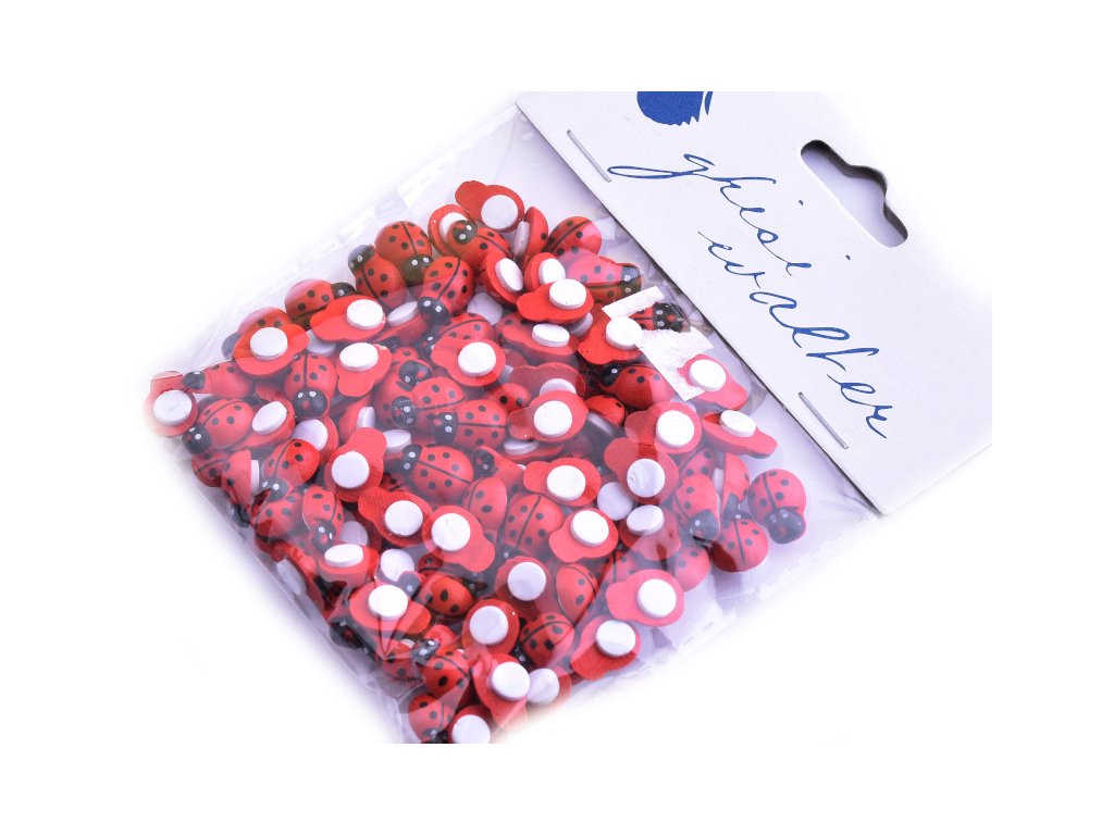 Samolepící dřevěné berušky pro kreativní tvoření (přáníčka, obrázky, květinové dekorace, apod.).
