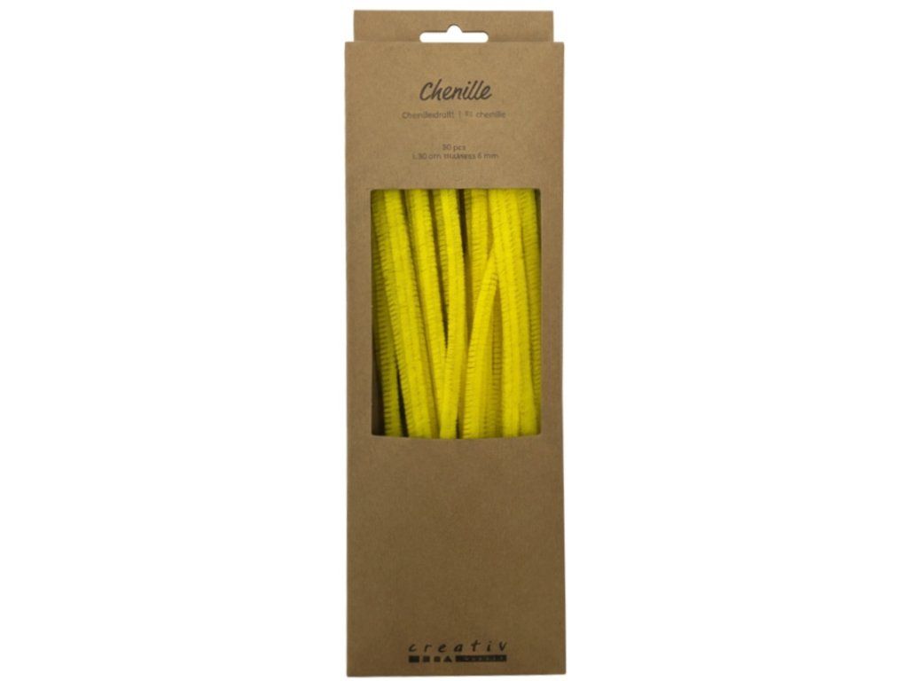 V balení je 50 žlutých chlupatých drátků.
