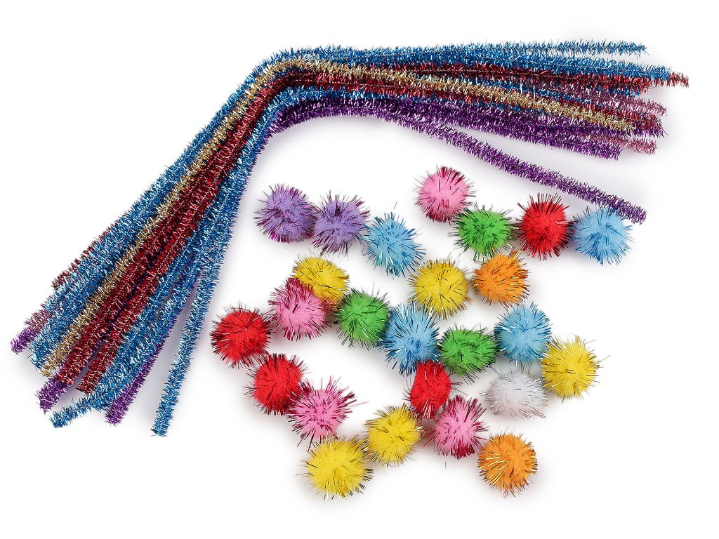 Kreativní sada z chlupatých lurexových drátků a bambulek s lurexem nadchne děti i dospělé. Drátky i bambulky se krásně třpytí, můžete z nich vytvořit vlastní postavičky zvířátek, pohádkových postav či lidí, můžete vyrobit různé květy nebo drobné roztomilé dekorace do interiéru.