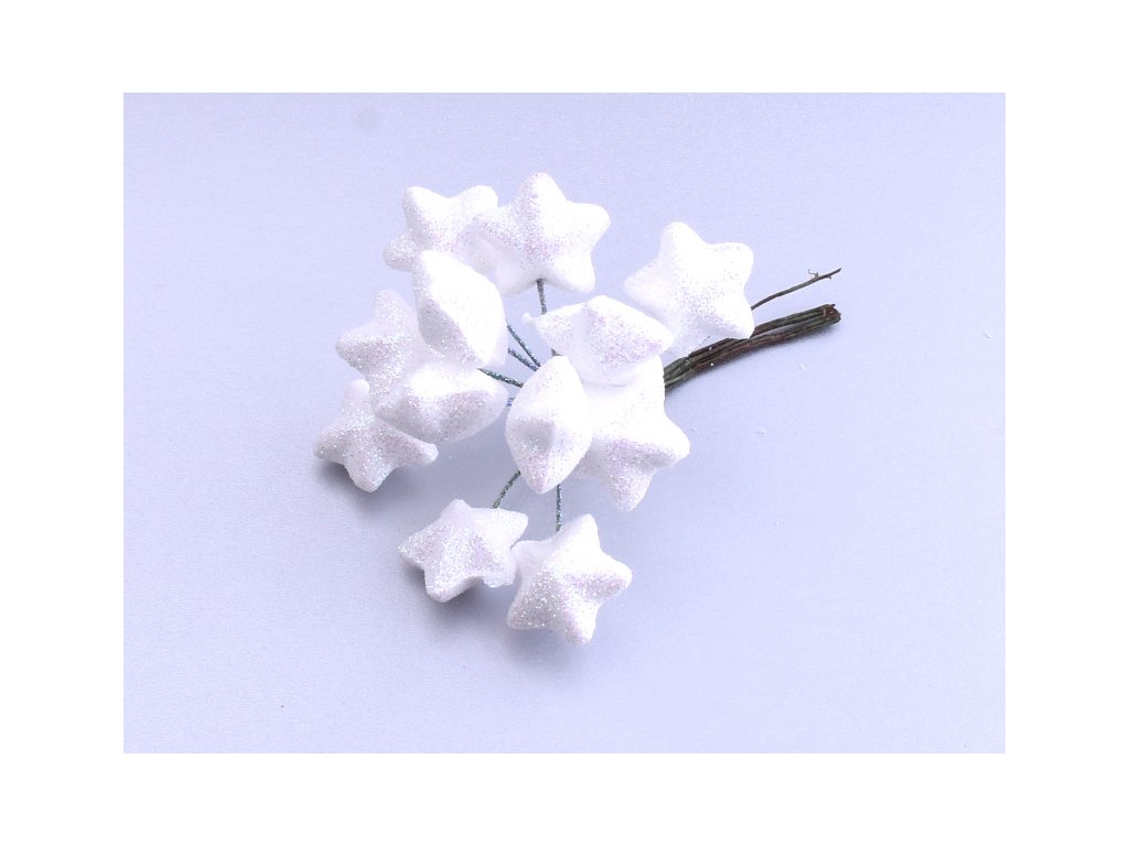 Hvězdy na drátku glitter bílé 12ks