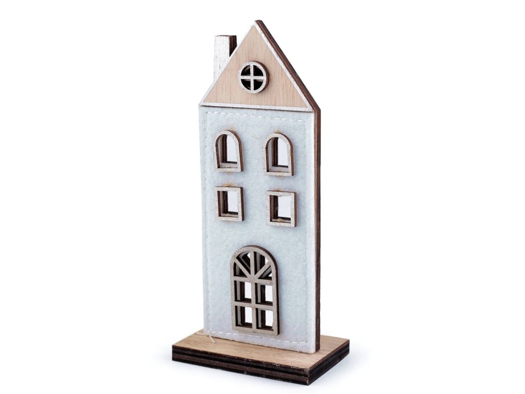 Dekorační domeček můžete postavit na parapet okna, polici nebo třeba krbovou římsu. Stylově doplní různá aranžmá. Materiál je v kombinaci dřeva a filcu.