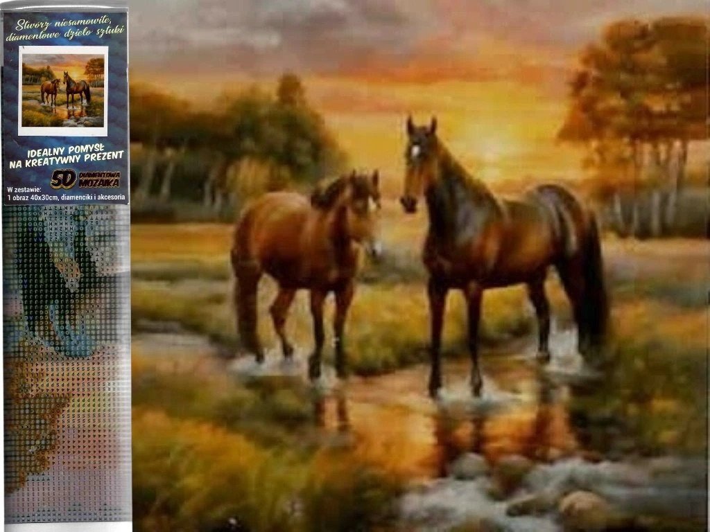 Diamantové malování 30x40cm koně v potoce