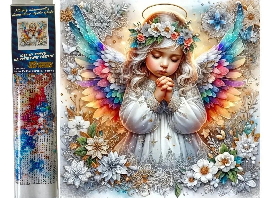 Diamantový obrázek- Andělíček s duhovými křídly 30x40cm