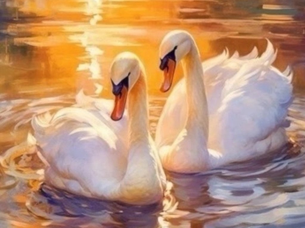 Diamantový obrázek Bílé labutě 30 x 40 cm
