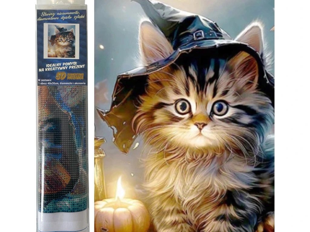 Diamantový obrázek Kočka v klobouku 30 x 40 cm