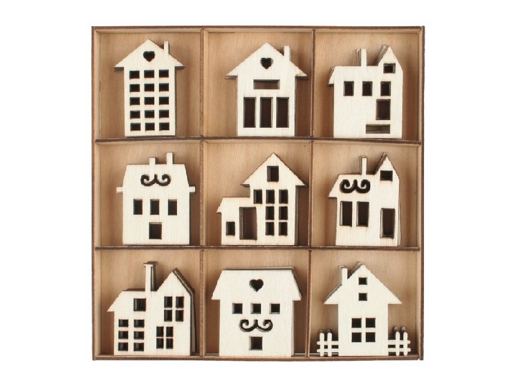 Sada dřevěných dekorací Domy 3,5 x 3 x 0,2 cm, 54 ks