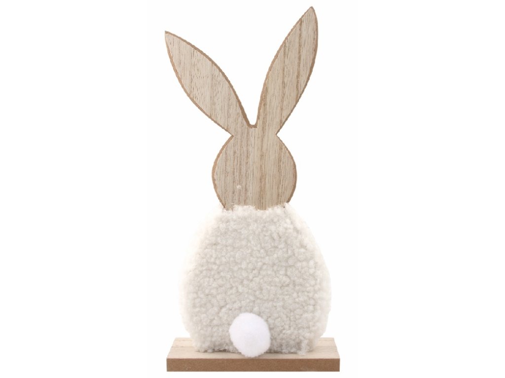 Zajíc dřevěný v bílém kožíšku 11 x 23 cm na postavení