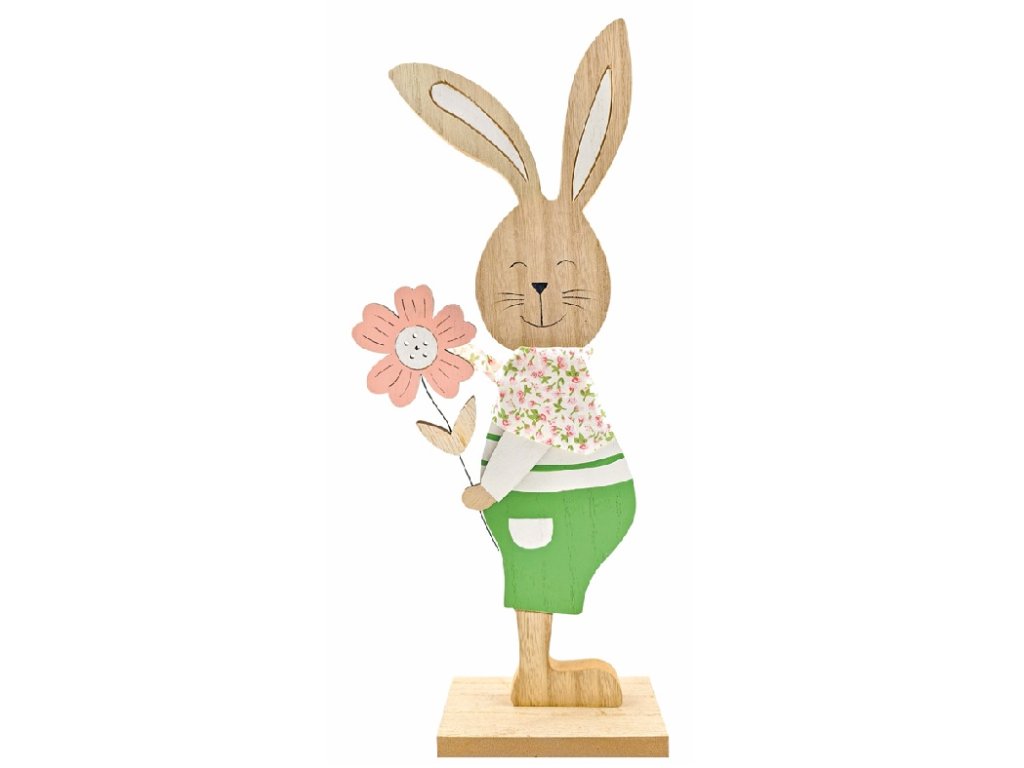 Zajíc s kytkou dřevěný 13 x 41cm na postavení