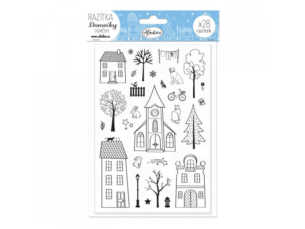 Gumová razítka na pěnové hmotě s oblíbenými motivy domečků. Ideální na celoroční tvoření: papírové tvoření, výrobu přání, diářů, deníků i nápaditých dekorací z kartonu nebo dřeva. Sada obsahuje 28 ks razítek.