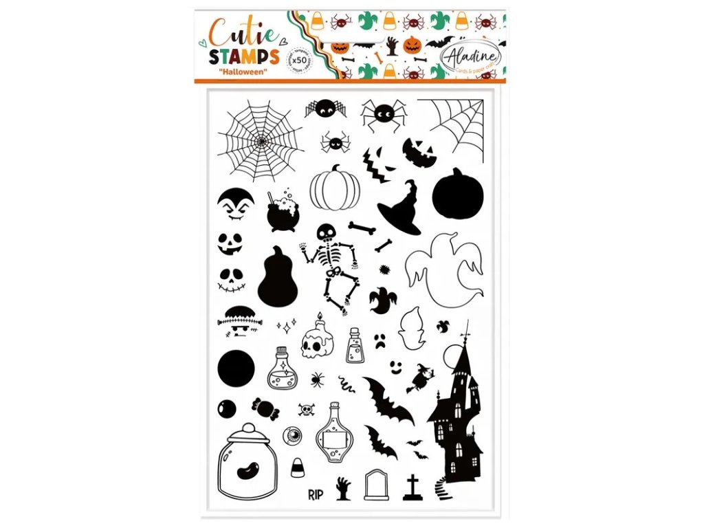 Sada obsahuje 50 razítek s halloweenskými motivy.