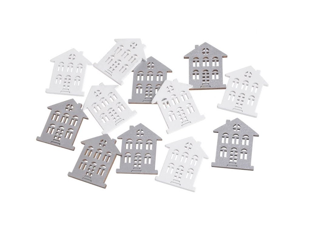mix dřevěných domků (12 ks) - stříbrnošedá/bílá