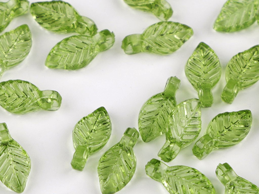 Plastové korálky lístečky 5x10 mm sv. zelené 20g