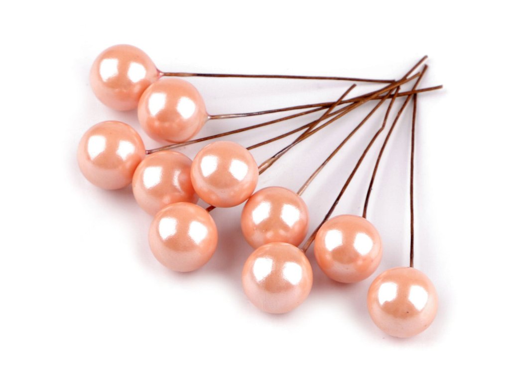 bobule na drátku Ø1,5 cm lososová sv. - 10ks