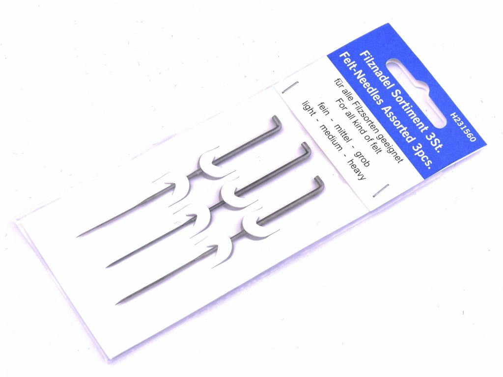 Jehly jsou dlouhé 7,8 cm a jsou určeny na plstění. Na jedné kartě naleznete 3 jehly různých velikostí: