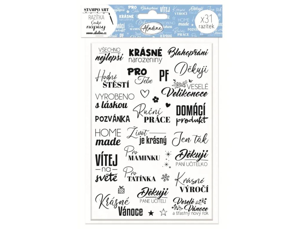 Razítka Aladine Stampo Art, 31 ks - České nápisy