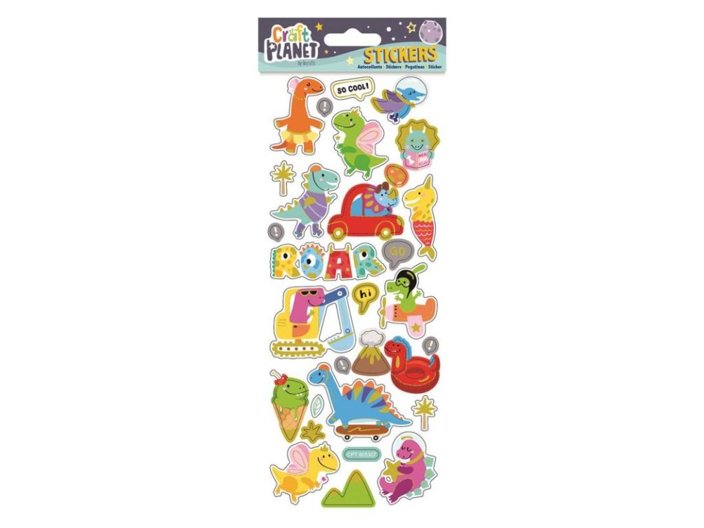 Samolepky s motivem dinosaurů. Můžete použít na vaše projekty např. scrapbooking, decoupage, výzdobu kartiček, bloků, diářů i na jiné aplikace.