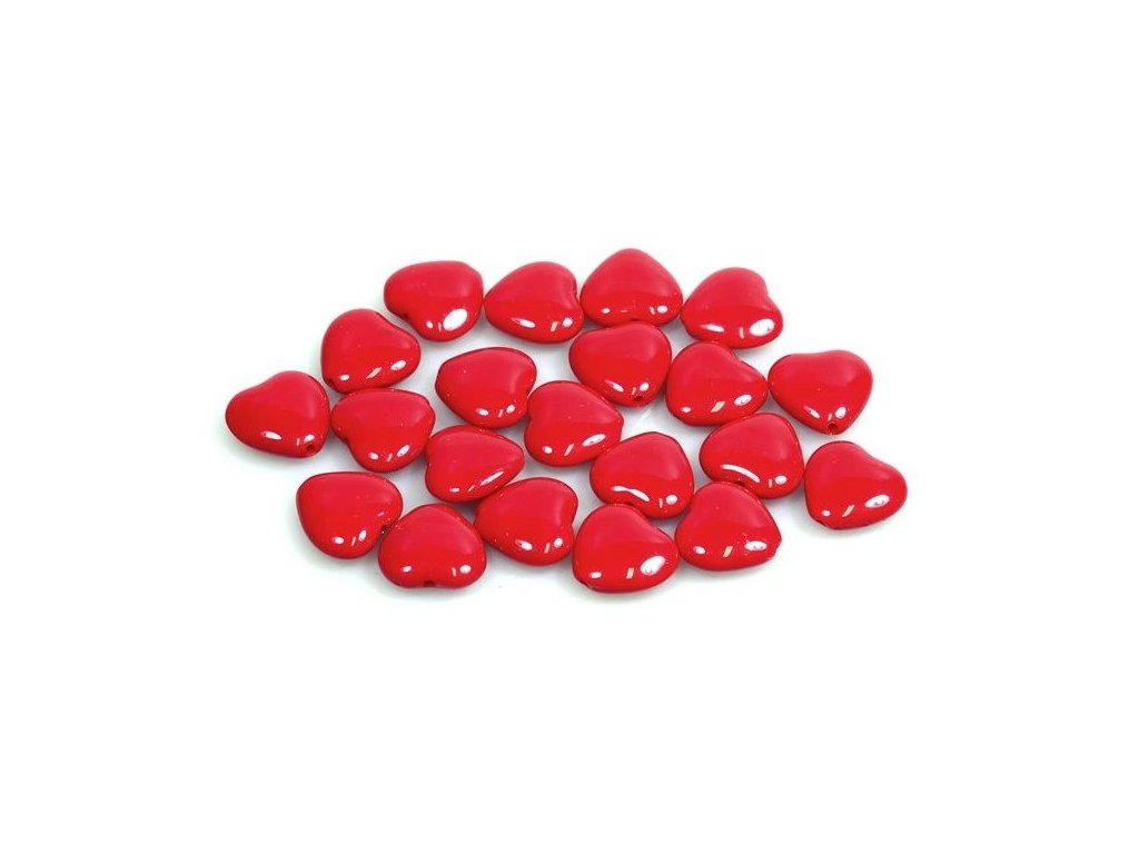 Skleněné korálky srdíčka 10x10, červená 93200 - 6ks