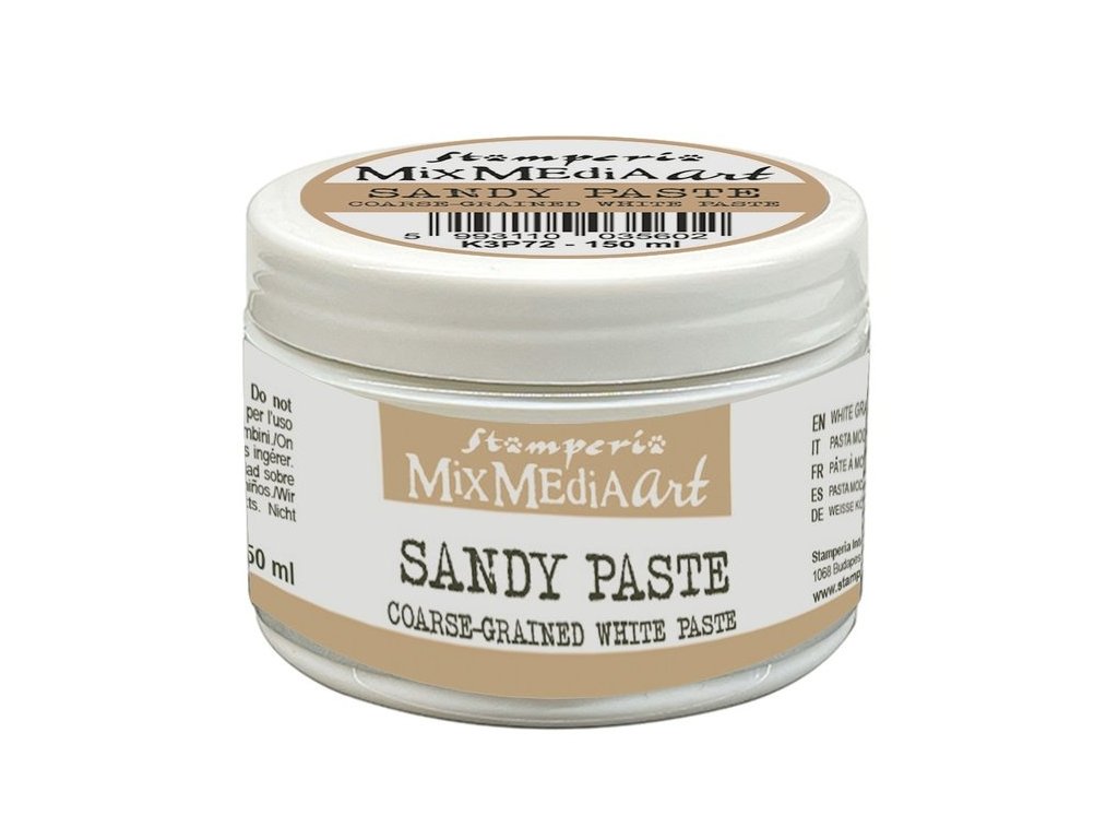 Strukturovací pasta na vodní bázi Sandy paste je hrubozrnná bílá pasta vhodná na reliéfy. Vytváří matný pískový efekt. Aplikujte pomocí špachtle nebo silikonového štětce. Pasta je vhodná na všechny povrchy. Obsah 150ml.