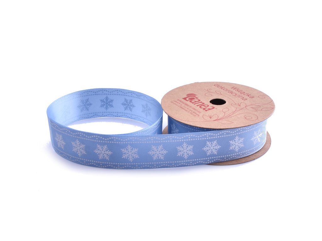 Dekorační stuha s potiskem vloček . Elegantní design vloček přináší pocit zimních svátků. Potisk je jednostranný.