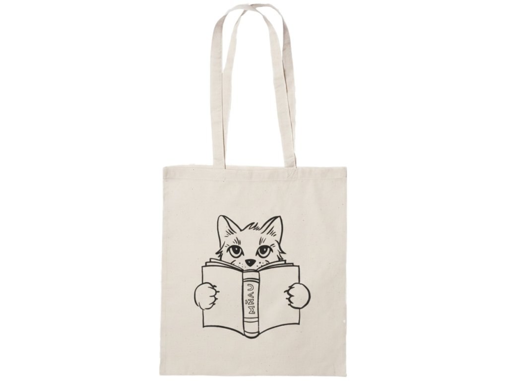 Plátěná taška s dlouhým uchem Kočka s knihou