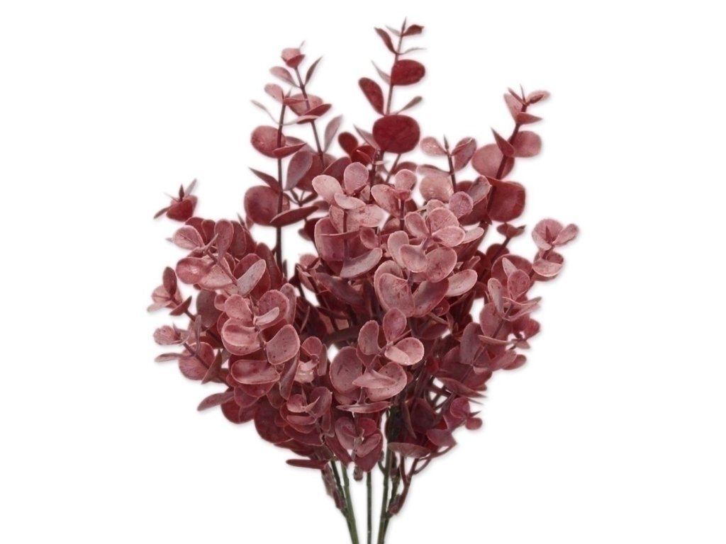 Eukalyptový keřík v jemném karmínovém odstínu. Přinese interiéru teplé podzimní barvy.
