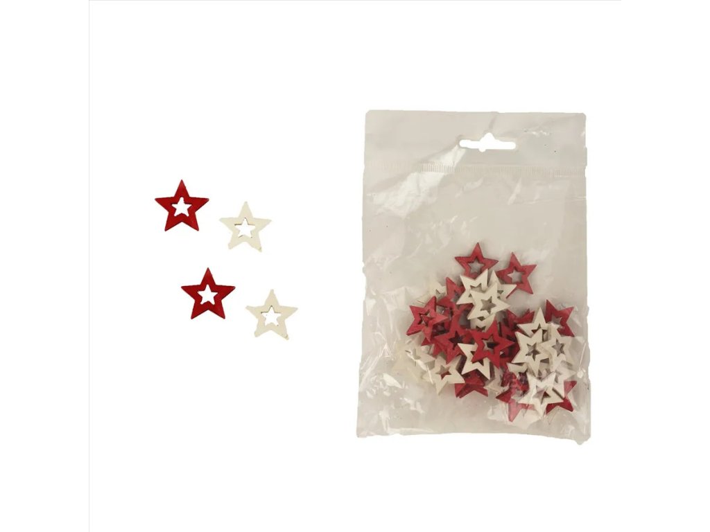 Dřevěné hvězdičky 2cm - 36ks bílé, červené