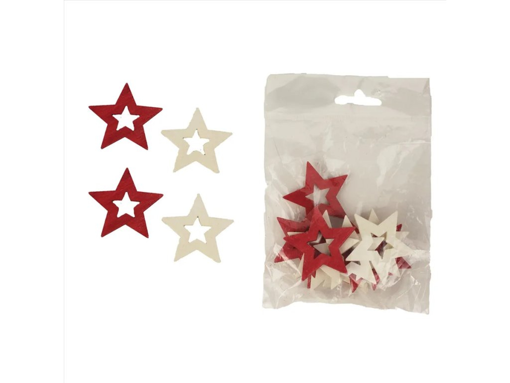Dřevěné hvězdy 4cm - 12ks bílé, červené