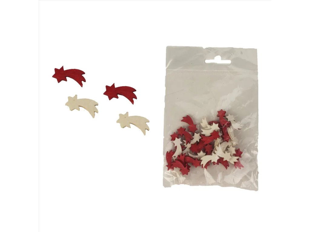 Dřevěné komety 2cm - 36 ks bílé, červené