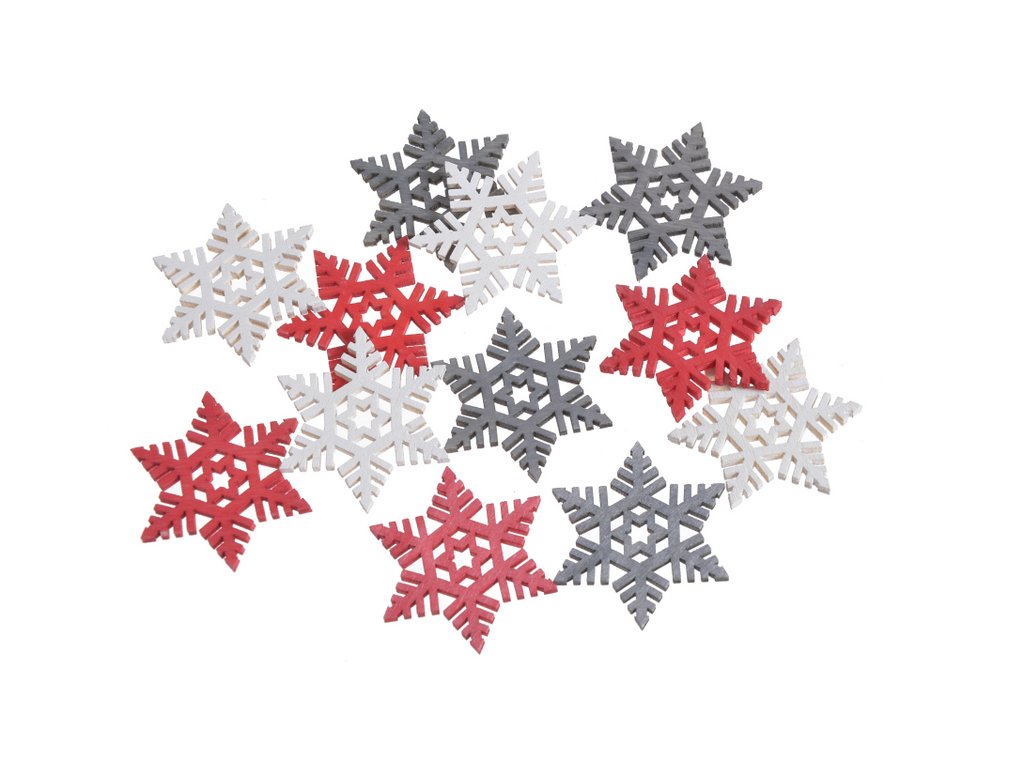 Vločky 4cm MIX 12 ks - bílá/červená/šedá
