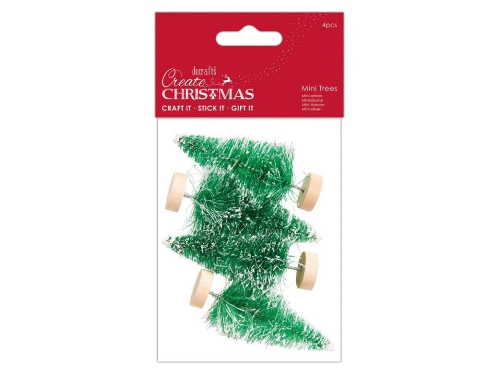 Balení obsahuje 4ks stromečků s dřevěným podstavcem. Materiál: kov a plast.