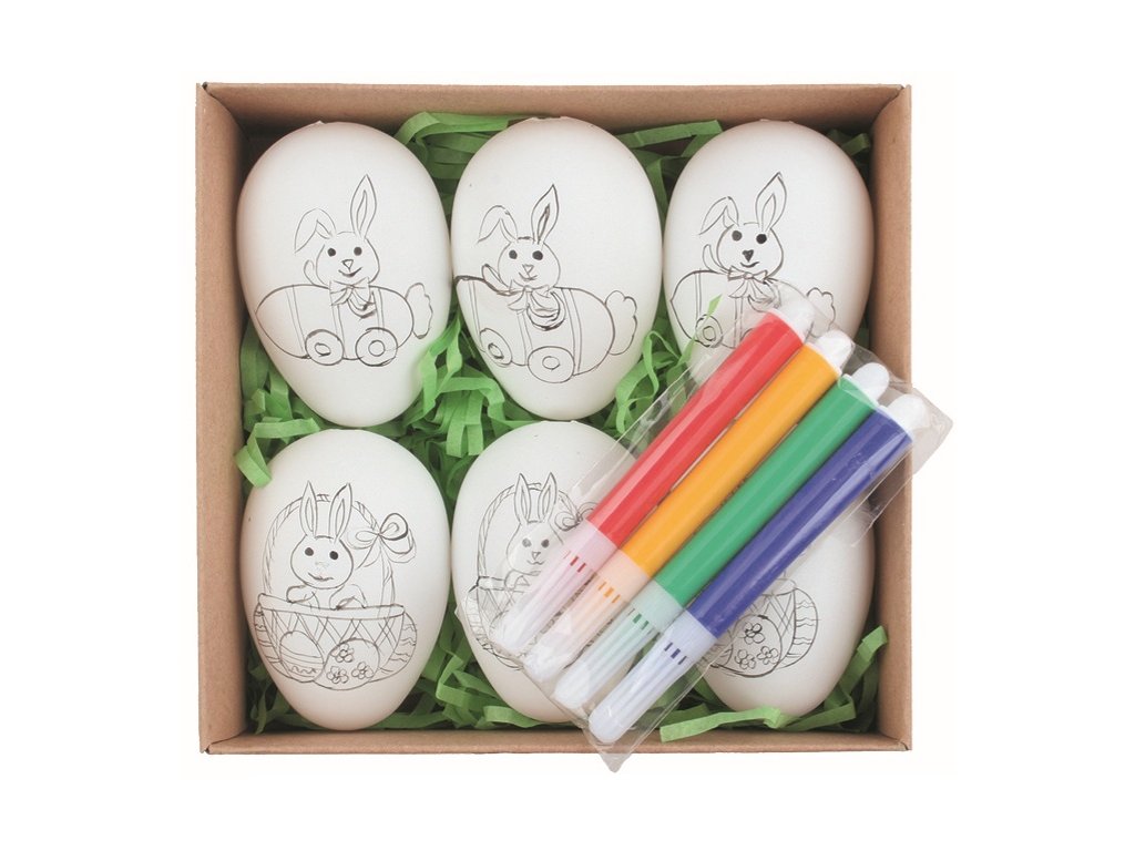 Sada velikonočních plastových vajec Zajíc 6 cm , 6 ks vajec + 4 ks fixů